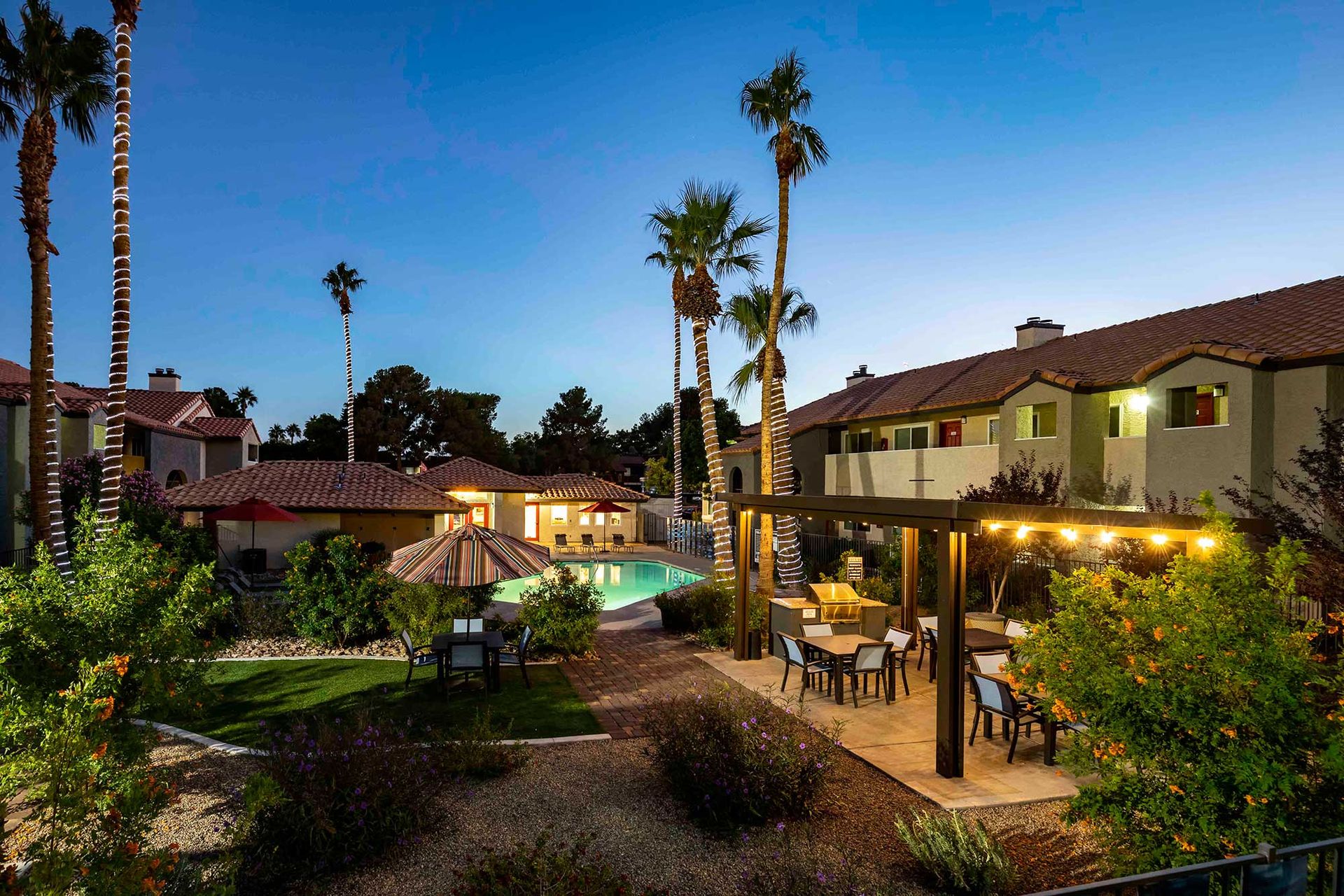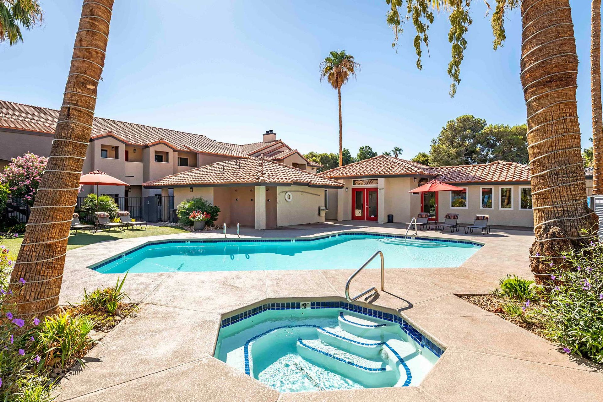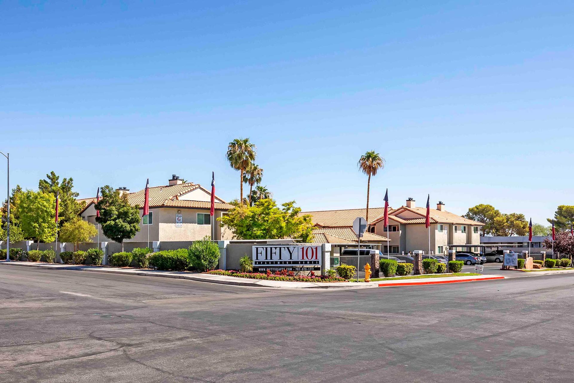 Fifty 101 Apartments: Beautiful inside and out. Come home to a relaxing oasis, surrounded by beautiful landscaping and tall palm trees. Designed for every lifestyle...from the fitness lovers who will enjoy our workout facility, to the pet lovers who will enjoy the use of the dog park, to the workaholics who will enjoy relaxing down by the hot tub after work or lounge poolside.